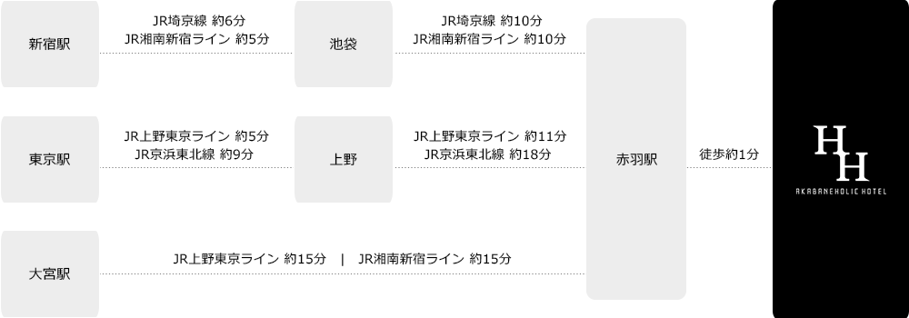 - ① Times Akabane Station West Exit (5 minutes walk to the hotel)