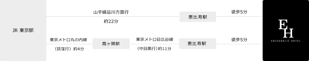・5 minutes walk from the west exit of Ebisu Station on the JR and Tokyo Metro Hibiya lines