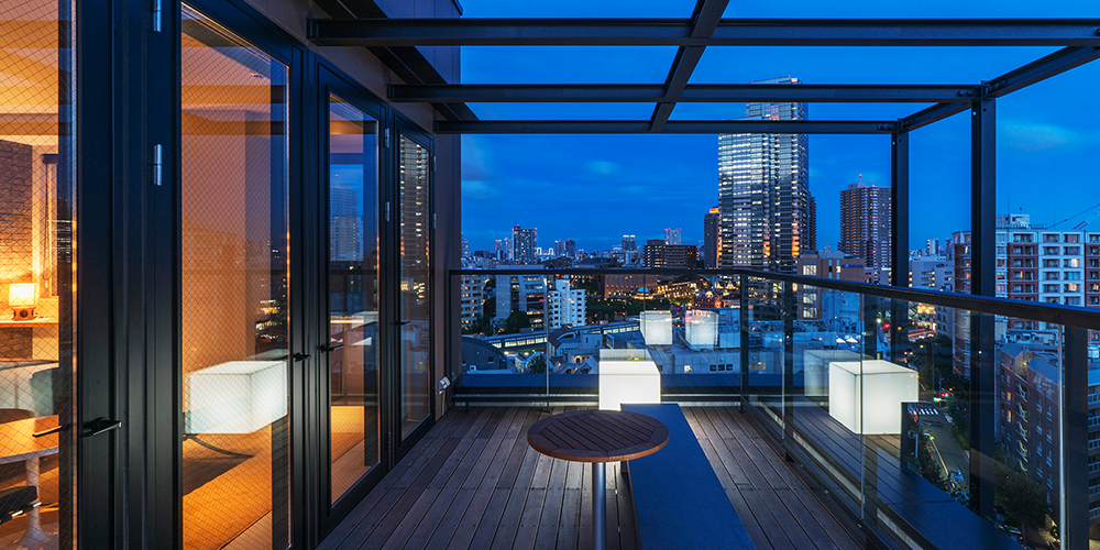 Beyond the windows is a spacious roof balcony, allowing you to enjoy an extraordinary sense of openness and a 180-degree night view, even in the heart of the city.