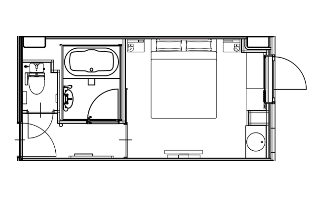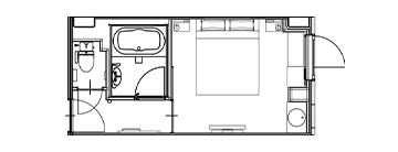 Another key feature is that the bath, sink, and toilet are separate. You can also store suitcases and other items in the space under the bed.