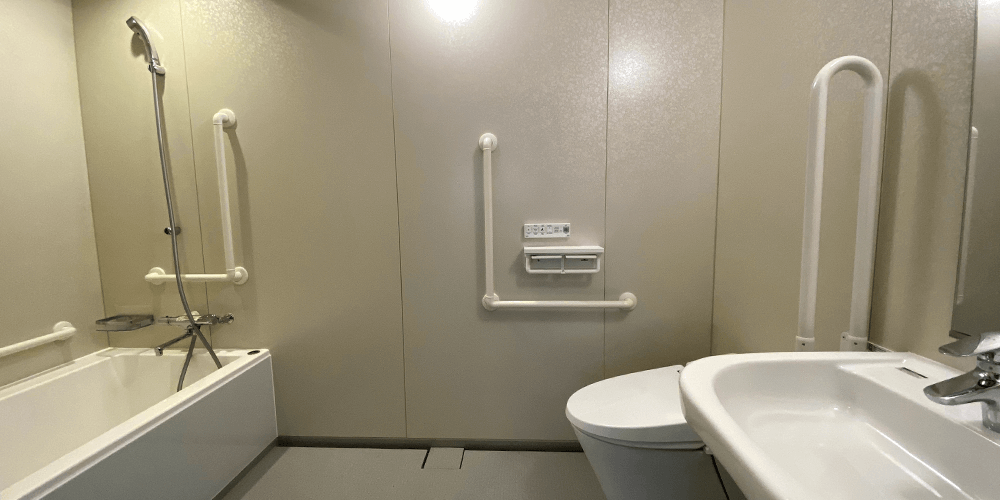 The interior has no steps, so elderly people and wheelchair users can enjoy a comfortable stay.
